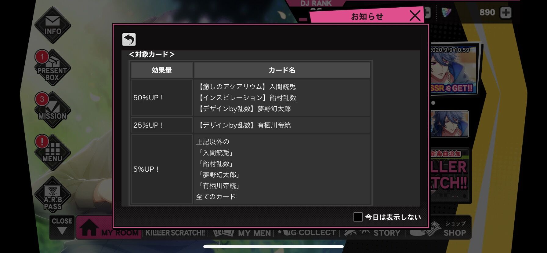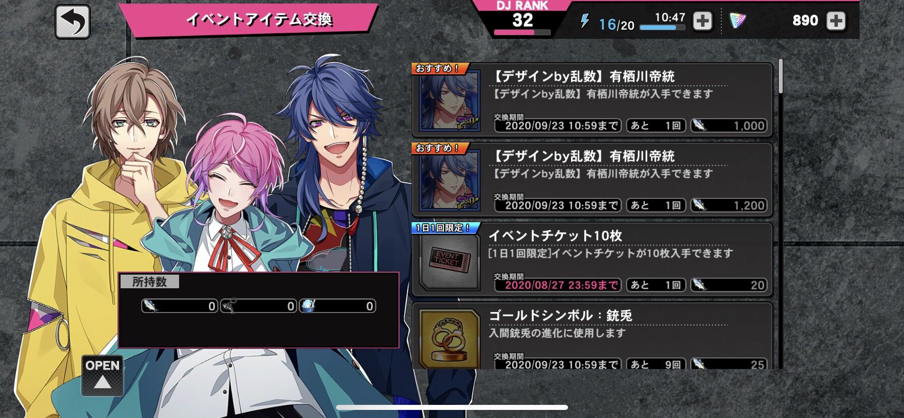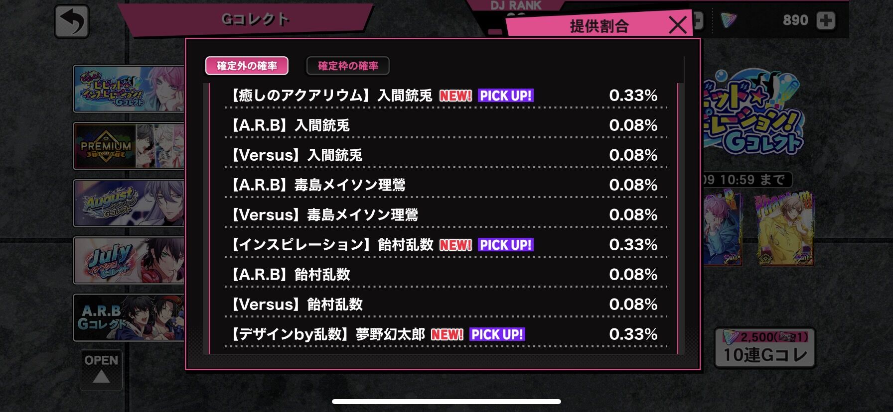 銃兎、乱数、幻太郎がピックアップの新ガチャもあり、3枚ともSSR