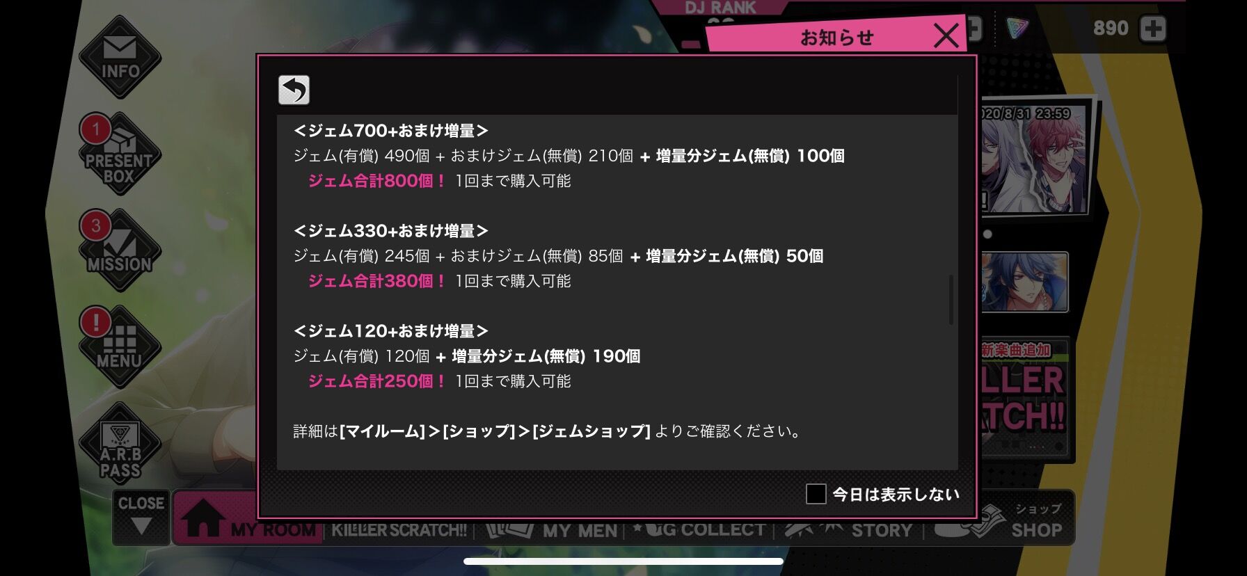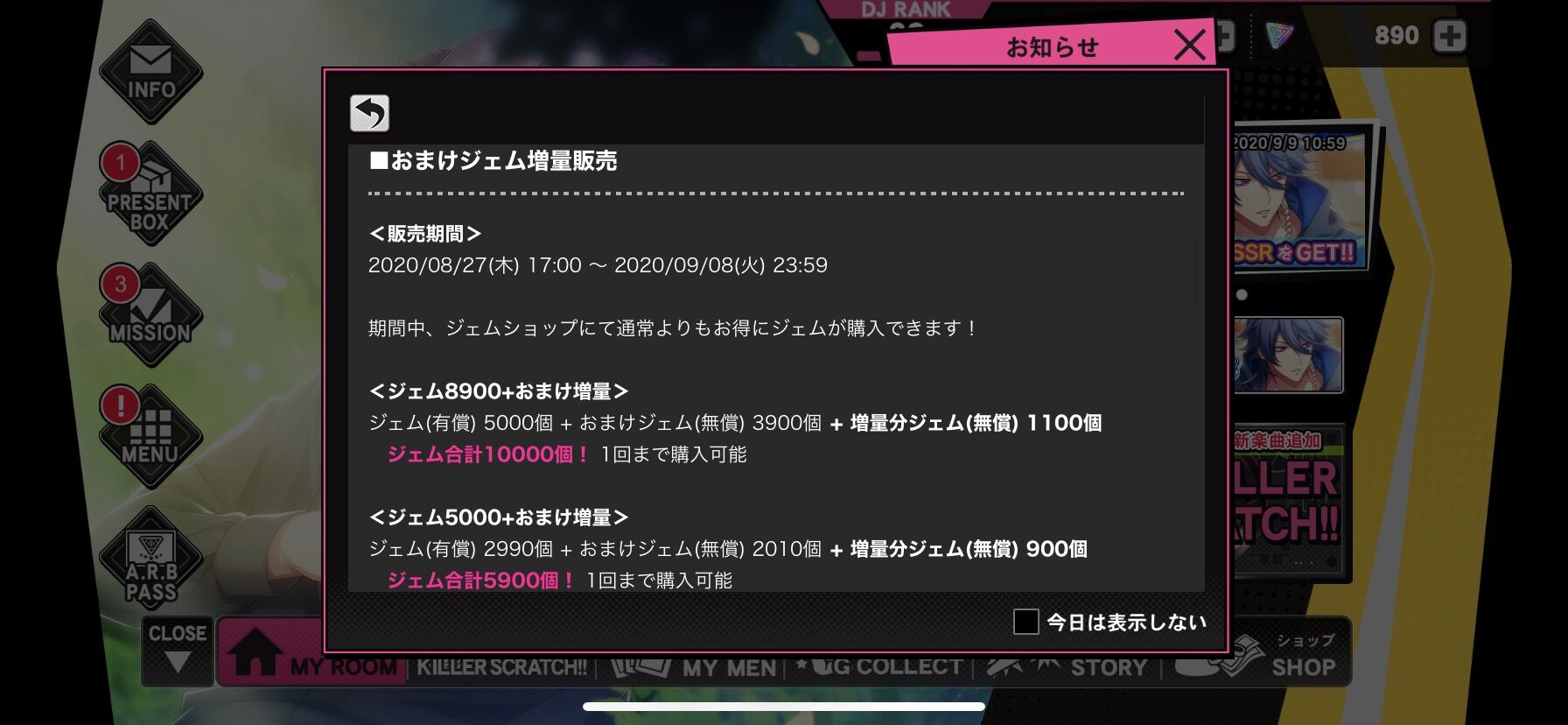 今日からおまけジェム増量販売開始、9/8(火) 23:59まで