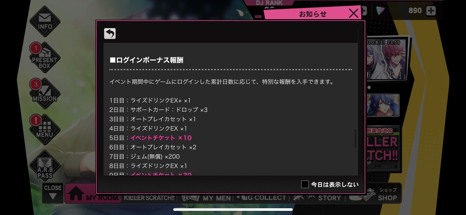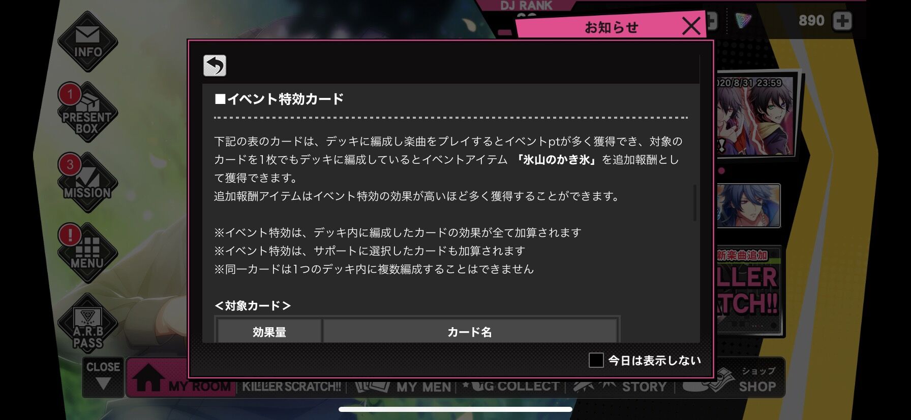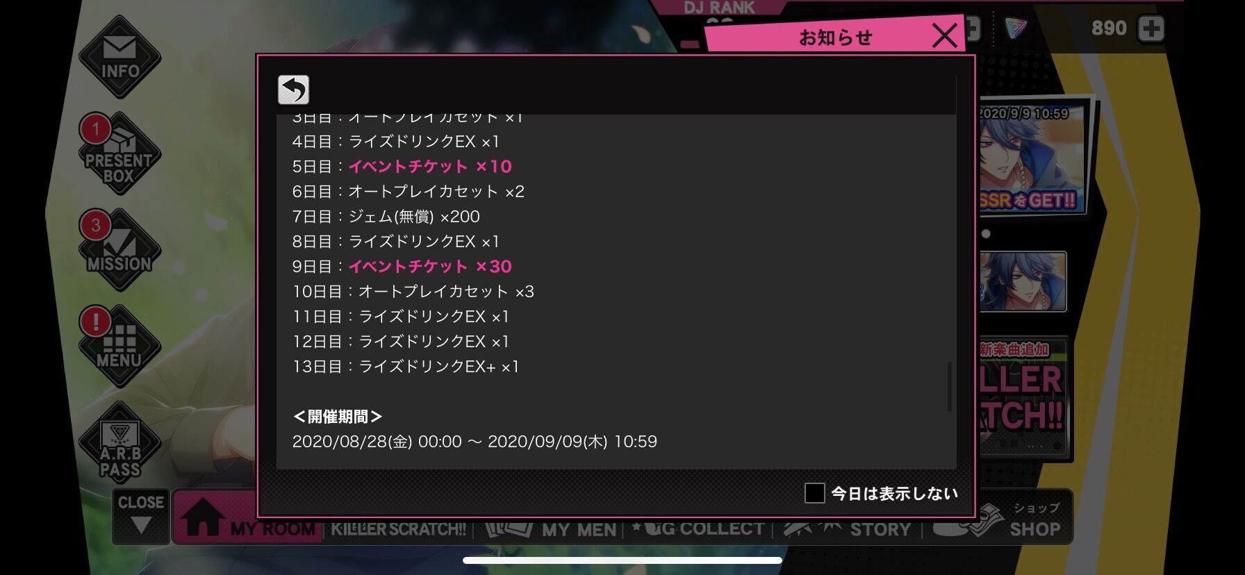 新曲追加記念のミッションも、9/3(木) 10:59まで