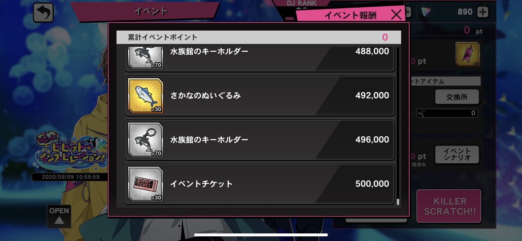 帝統は「さかなのぬいぐるいみ」1000個と1200個で2回交換可能、交換期間は9/23(水) 10:59まで