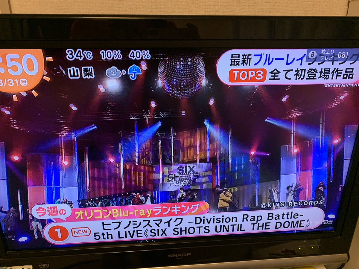 めざましでBlu-rayランキングでヒプマイ1位だったのか!見たかった( ´・ω・`)