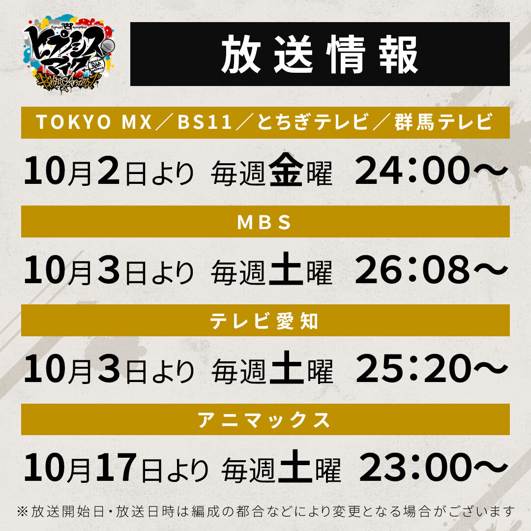 ▼放送・配信情報https://t.co/6diiqY2DGF#ヒプアニ pic.twitter.com/Q0RL8ihuZf