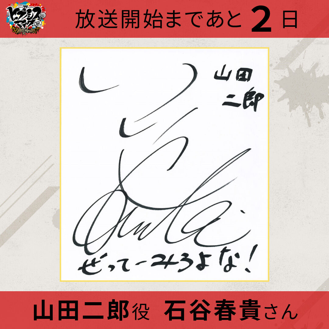 ヒプアニ放送開始まであと2日、二郎役石谷春貴のメッセージ色紙公開