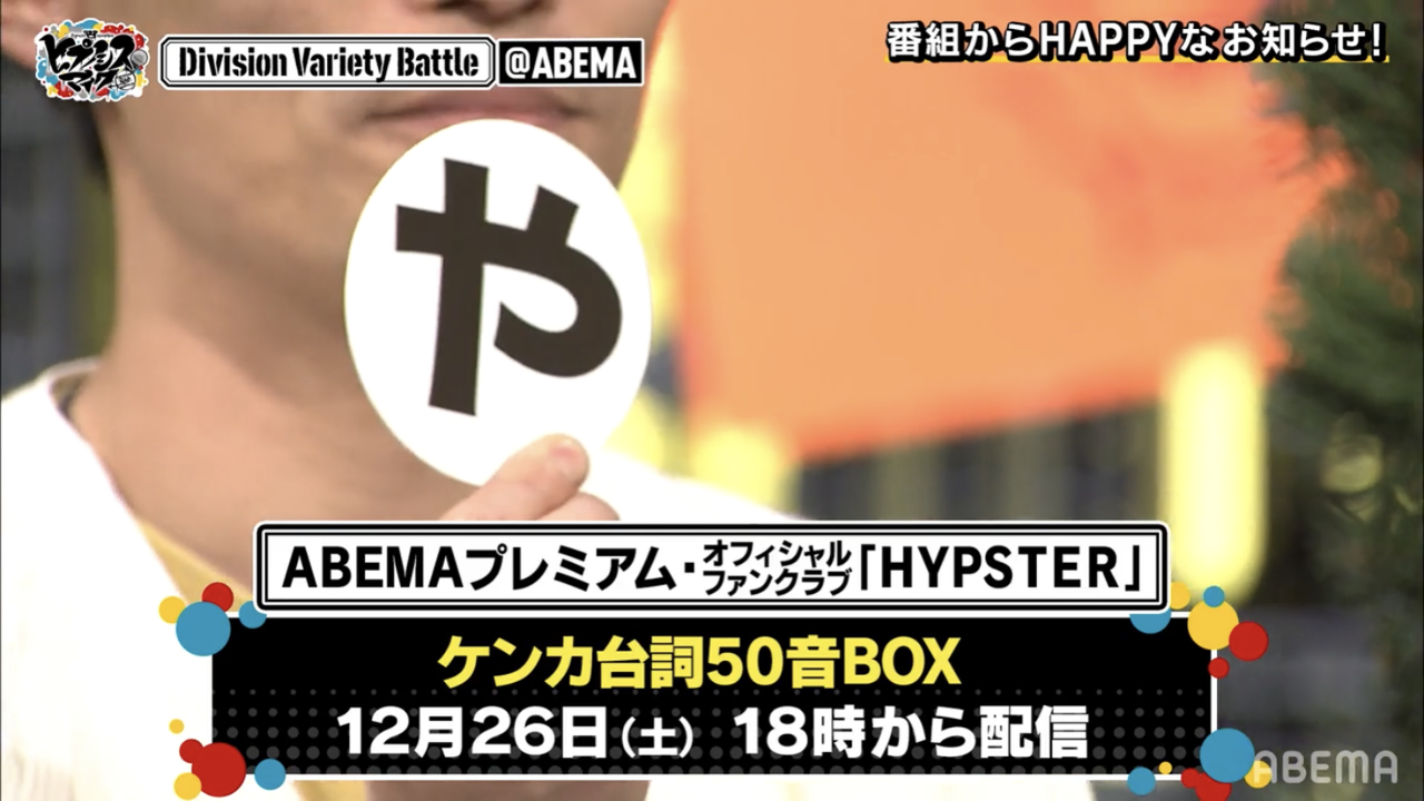 12/26(土) 18:00~ ABEMAプレミアムとHYPSTERで限定動画公開
