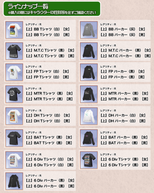 ラインナップ(各500コイン)