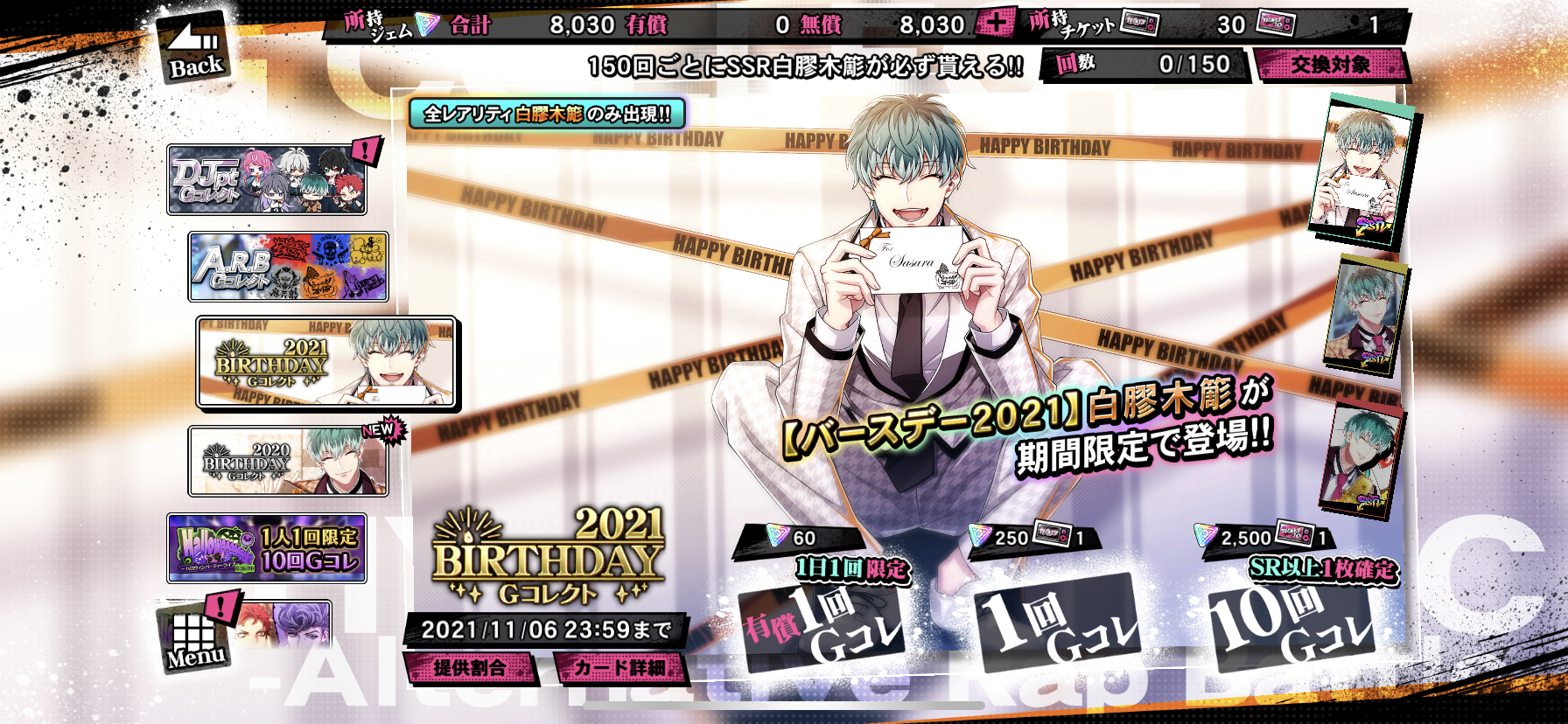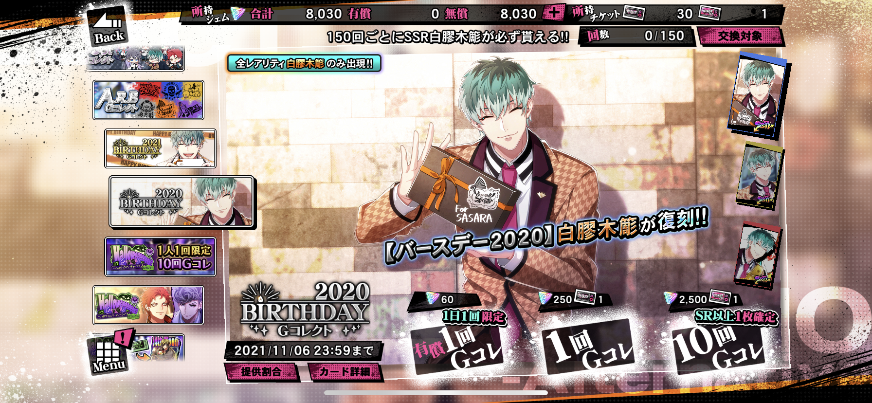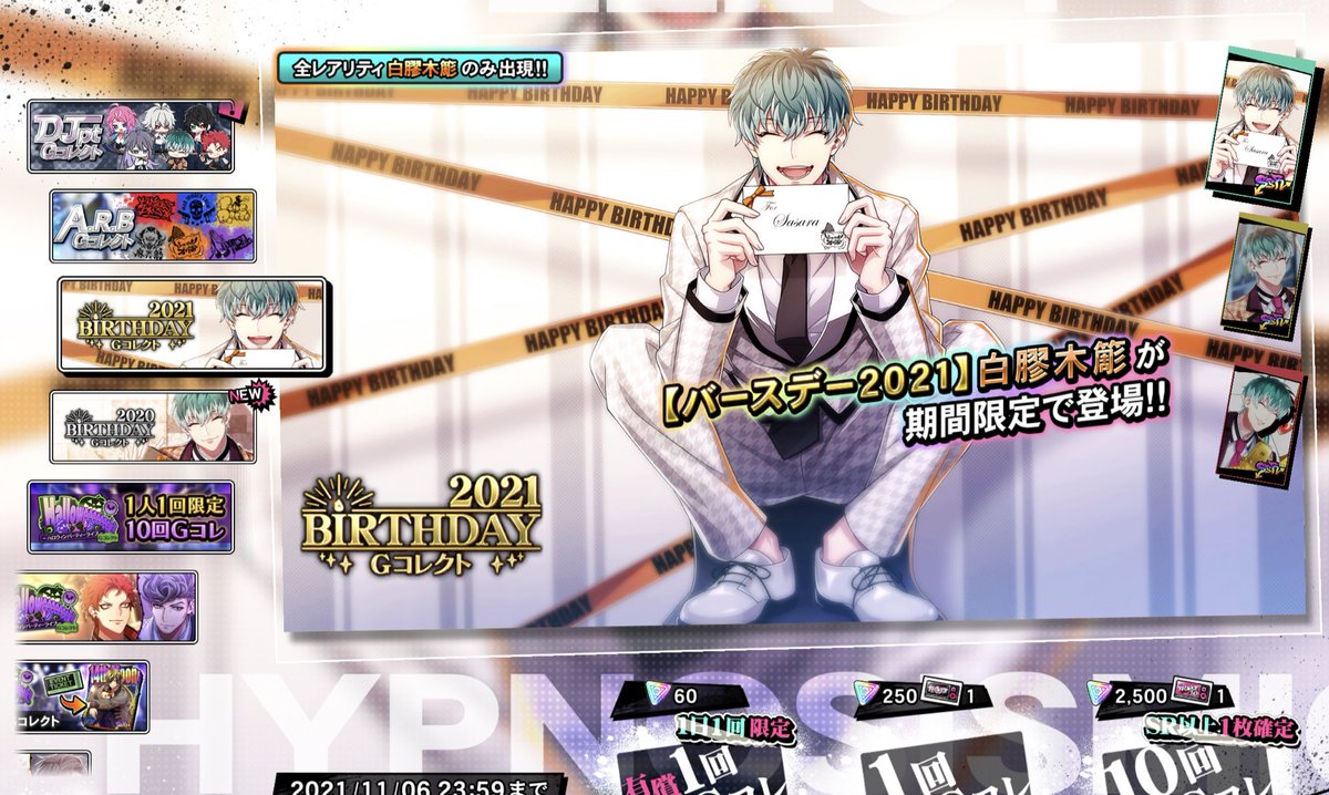 「白膠木簓 BIRTHDAY Gコレクト」開催、11/6(土) 23:59まで