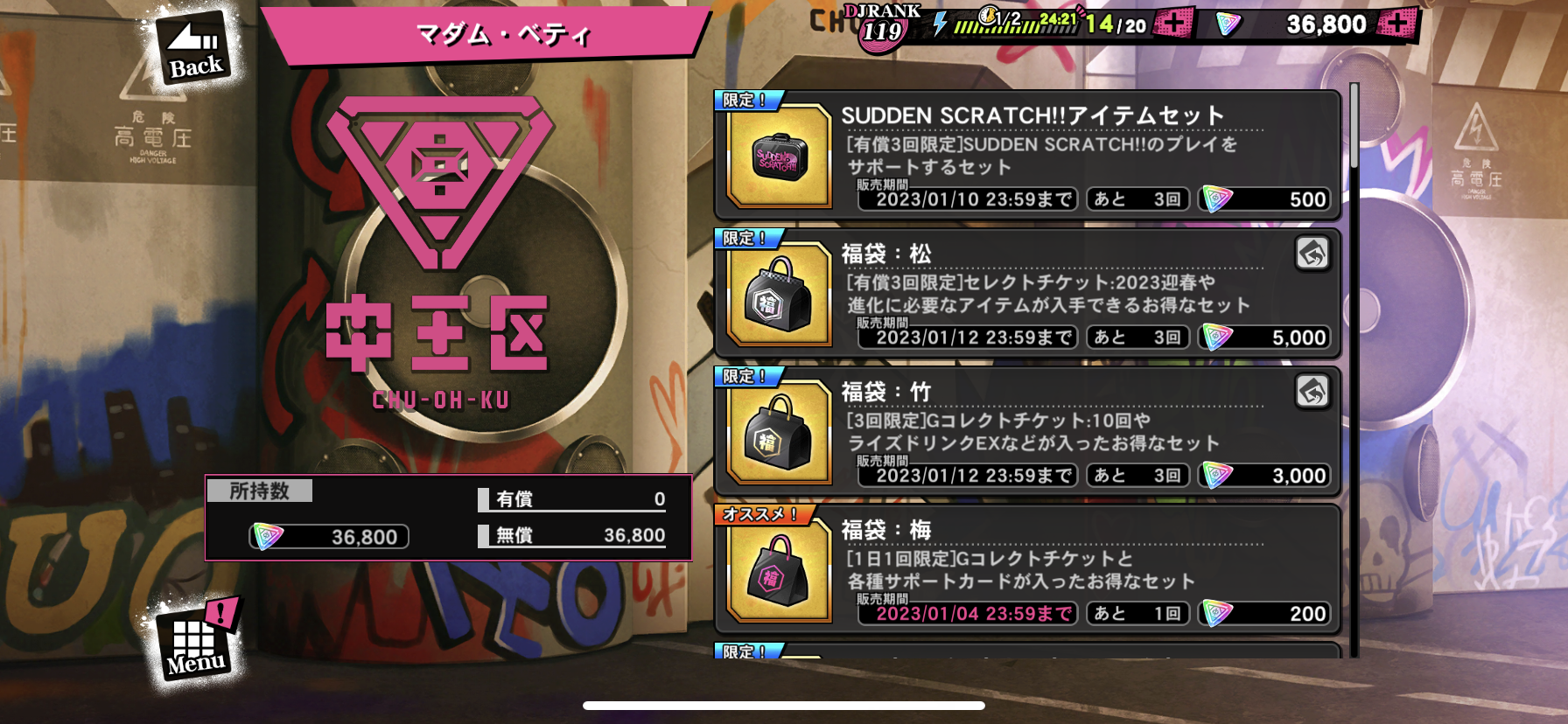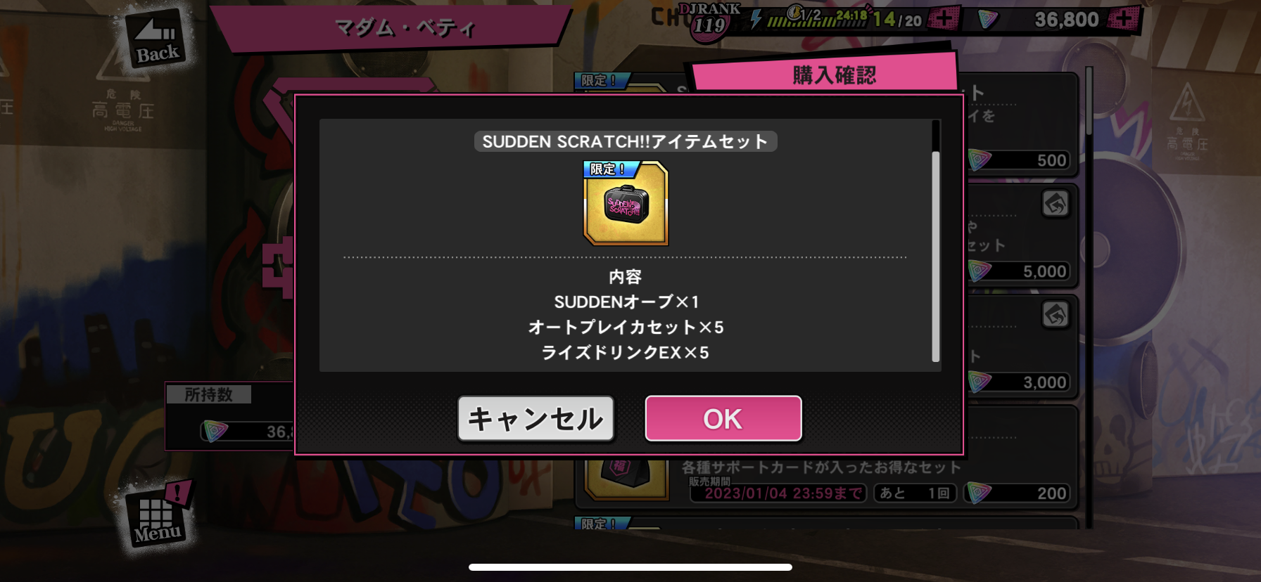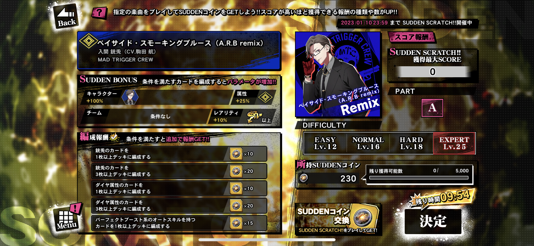 「SUDDEN SCRATCH!!」の曲は指定で制限時間内に1回のみプレイできる、今回のイベントは4パートから選ばれる