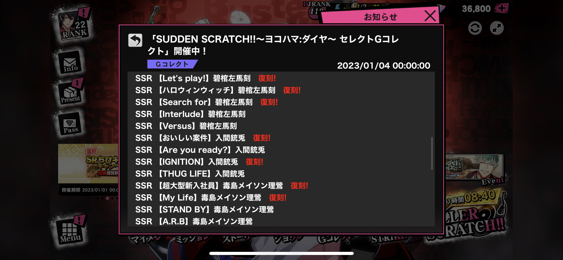 新イベント「SUDDEN SCRATCH!!~ヨコハマ:ダイヤ~」が今日からスタート、1/10(火) 23:59まで