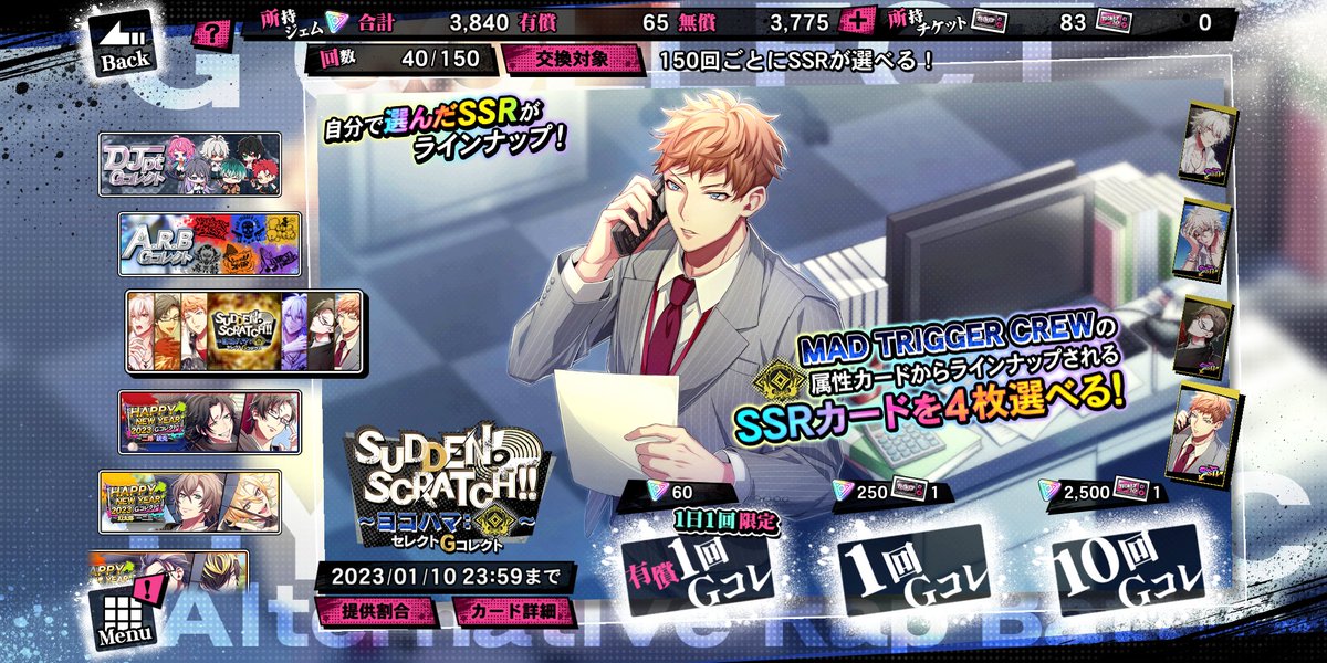 出現SSRを選べるガチャ「SUDDEN SCRATCH!!~ヨコハマ:ダイヤ~ セレクトGコレクト」も開催、1/10(火) 23:59まで