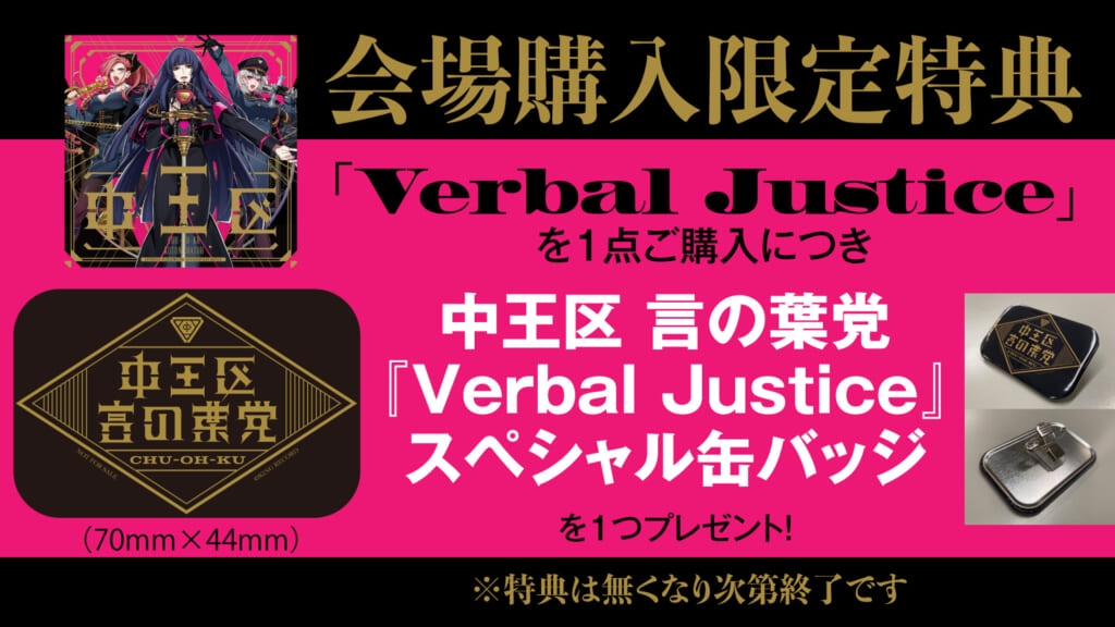 中王区 “言の葉党” 初のCD 『Verbal Justice』発売記念店頭抽選キャンペーン実施決定!