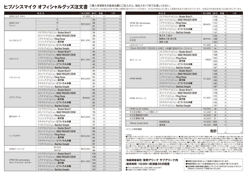 ヒプノシスマイク -Division Rap Battle- 9th LIVE ≪ZERO OUT≫会場物販のおしらせ