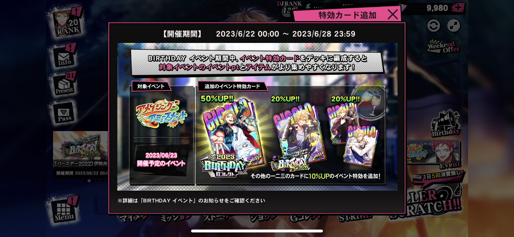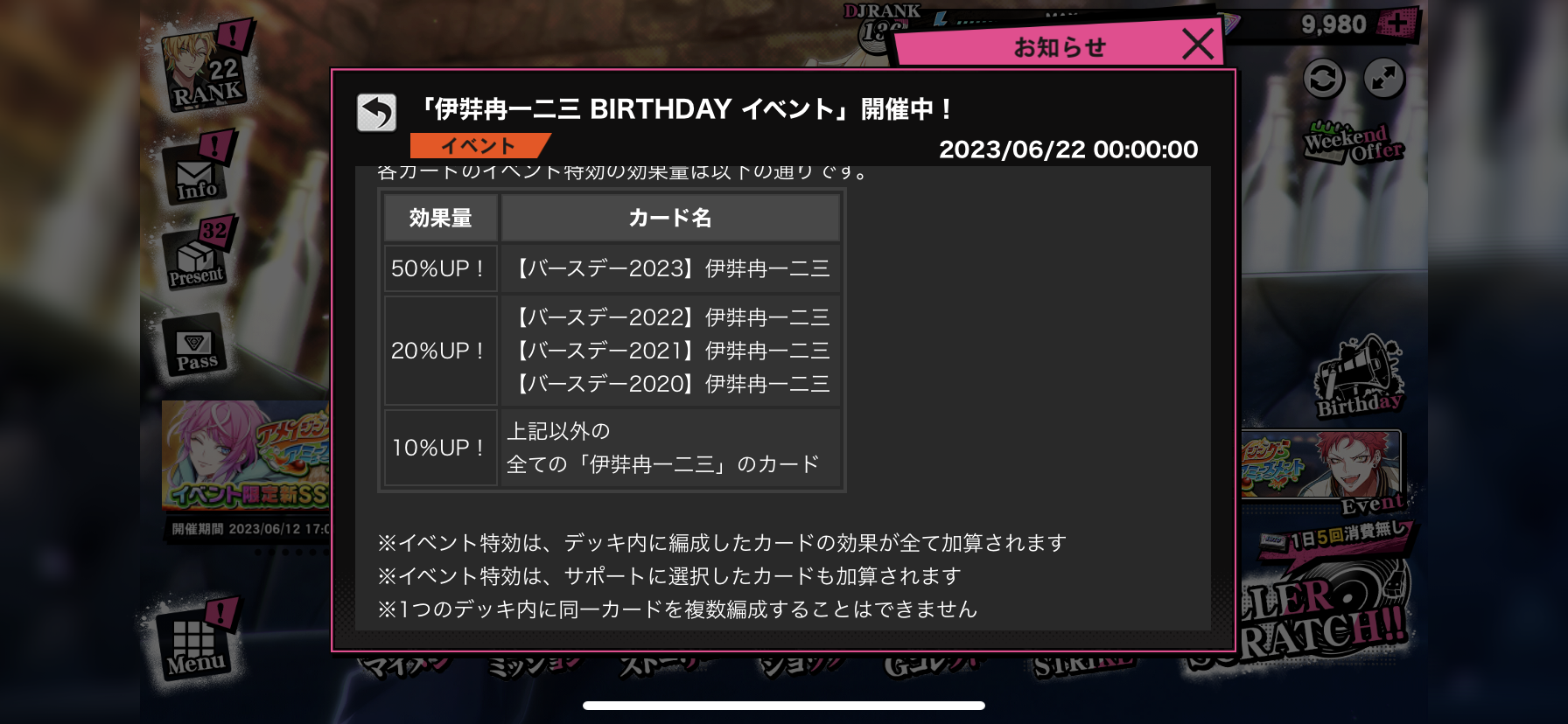 「伊弉冉一二三 BIRTHDAY イベント」開催中、他のイベントで一二三カードに特攻が付与