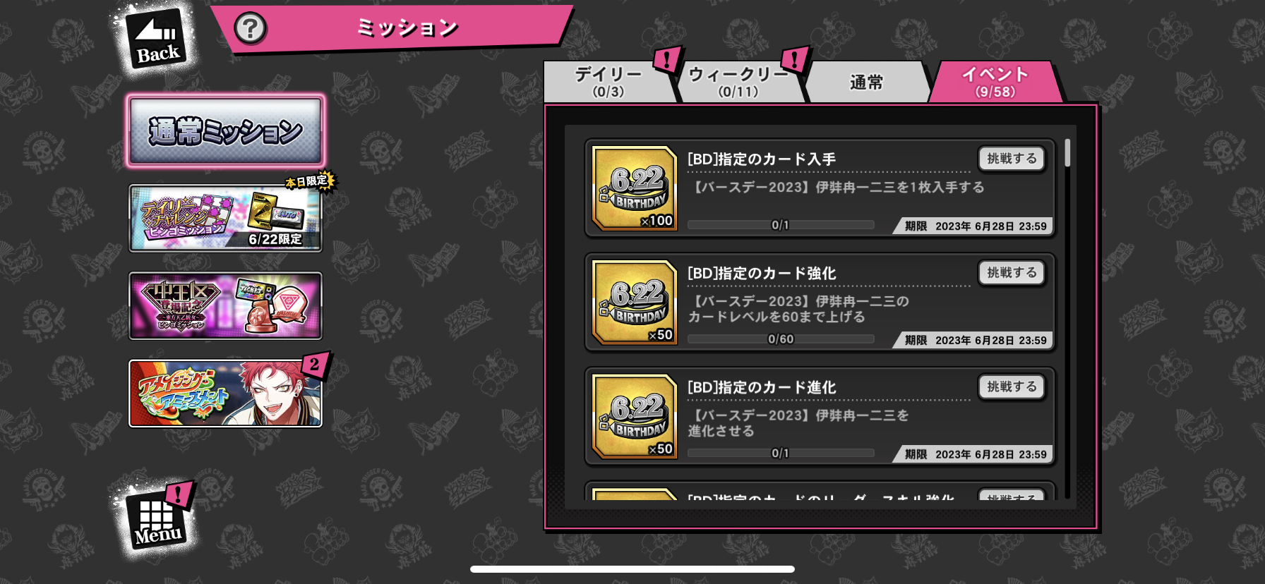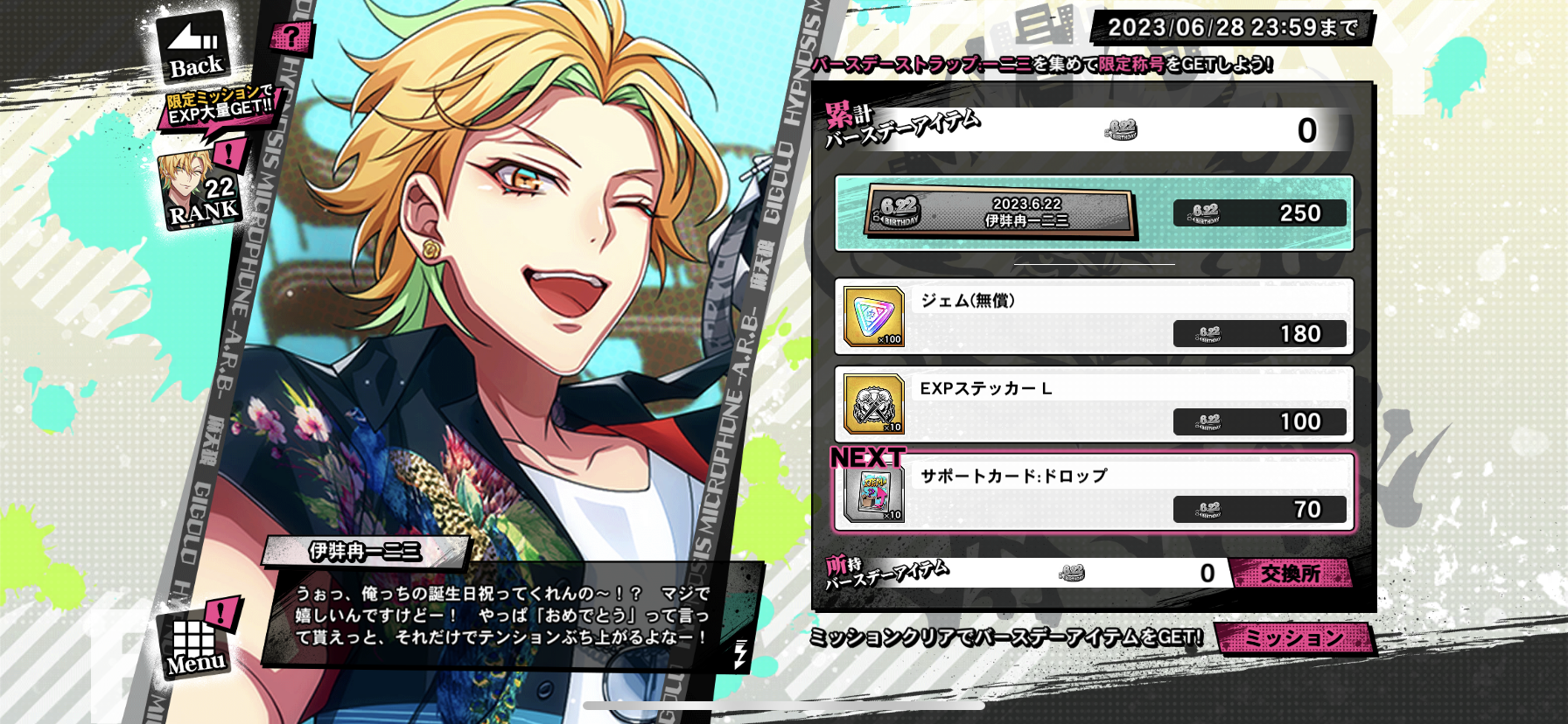 イベント専用アイテム「バースデーストラップ:一二三」がミッション達成で貰える