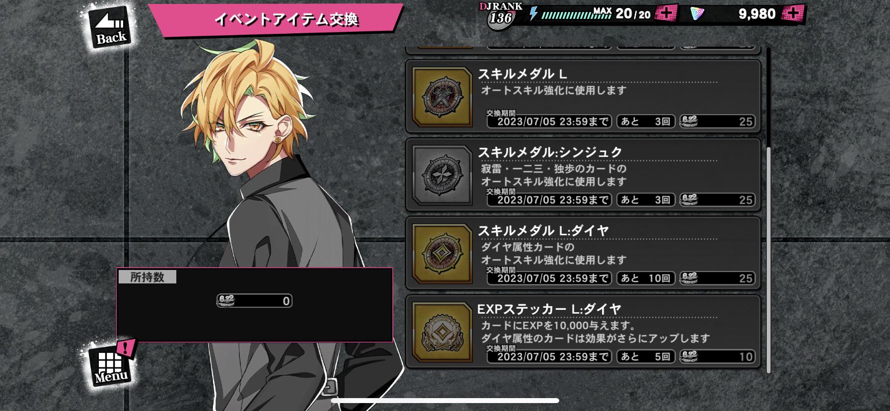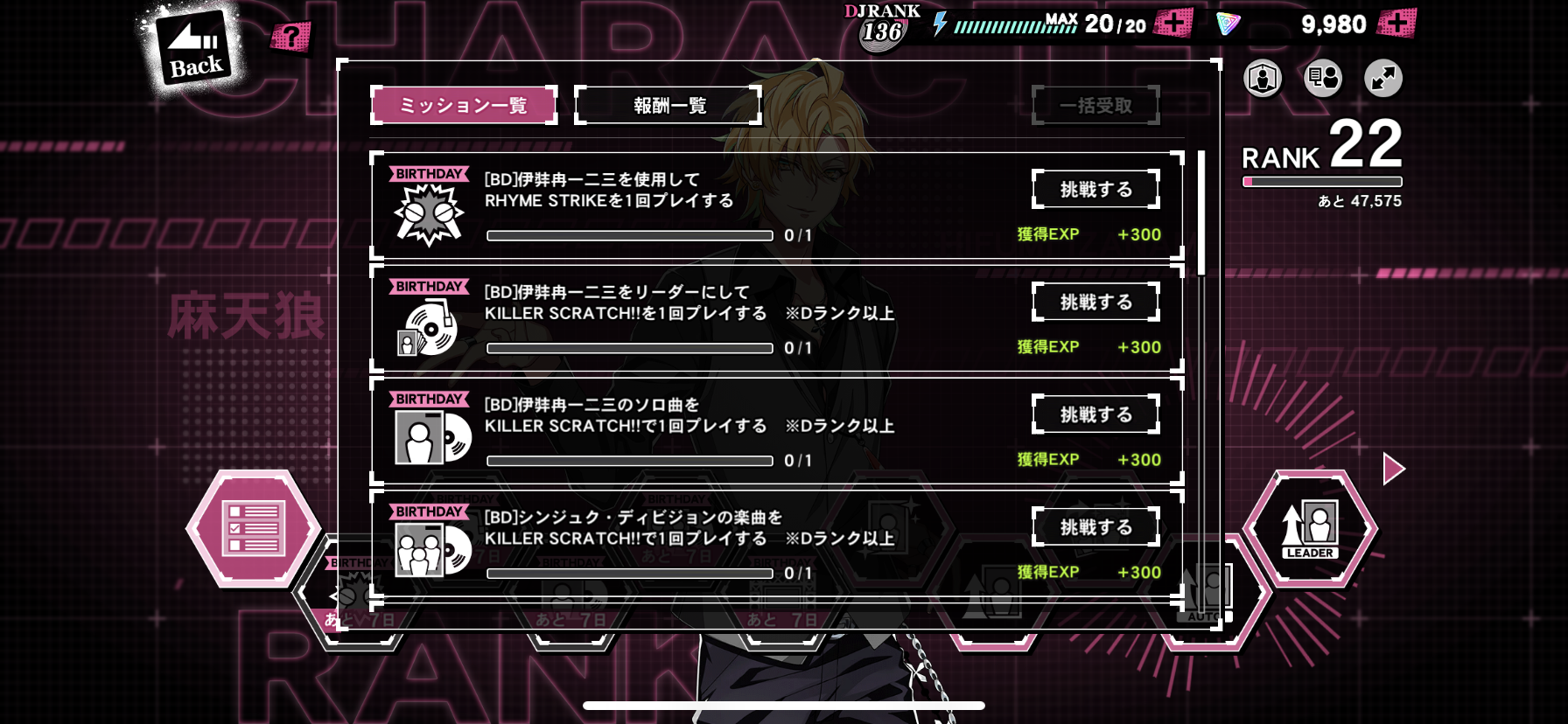 一二三のキャラクターRANKに期間限定のキャラクターミッション追加