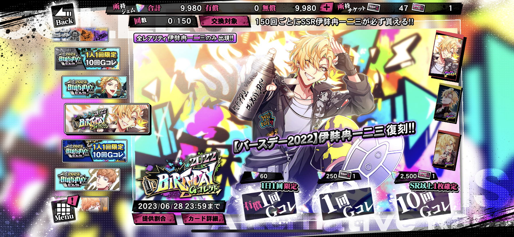 2022年のバースデーカード復刻「【復刻】伊弉冉一二三 BIRTHDAY Gコレクト」も、6/28(水) 23:59まで