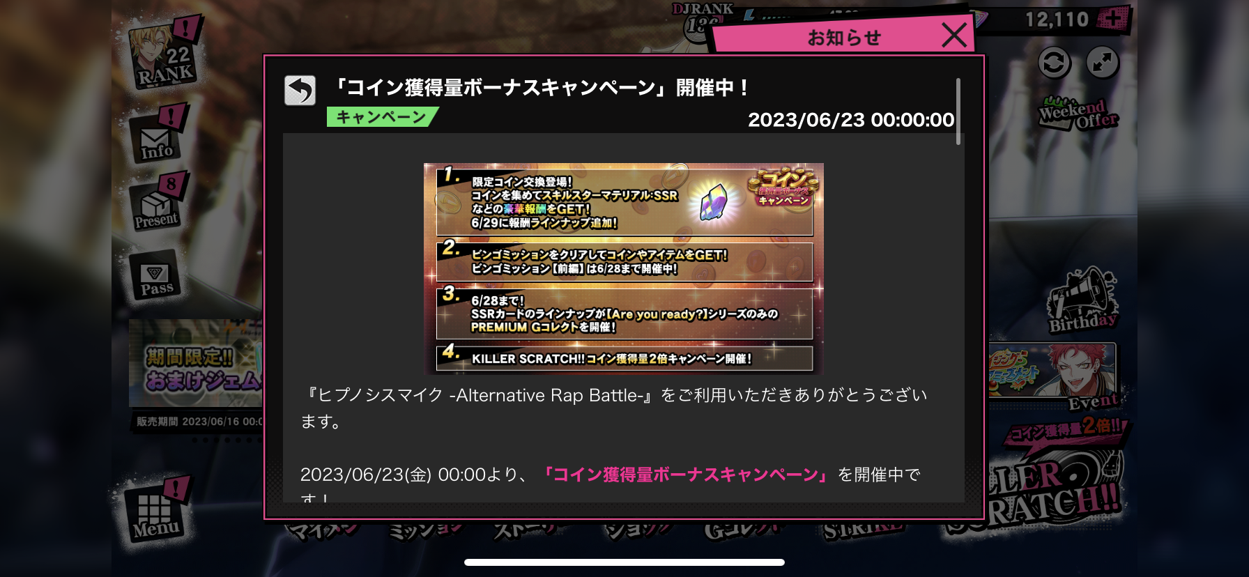 「ヒプマイARB」で「コイン獲得量ボーナスキャンペーン」開催、7/4(火) 23:59まで