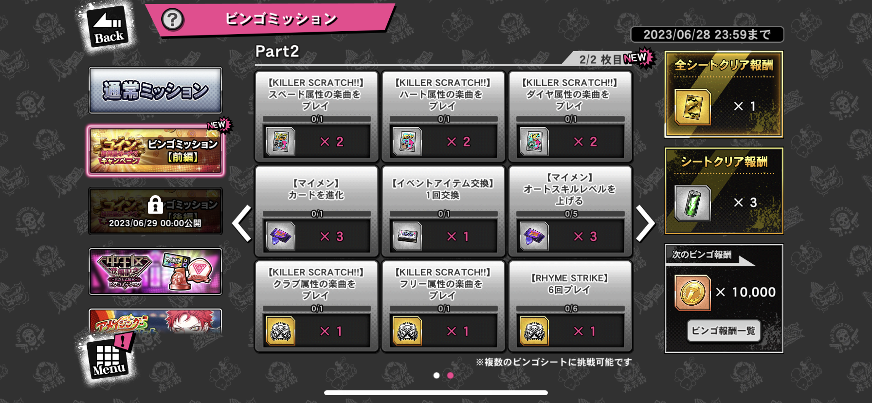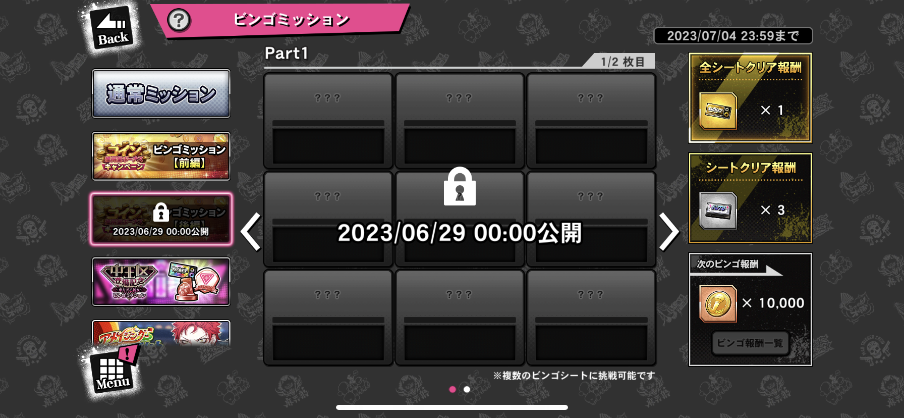 前編と後編のビンゴミッション開催