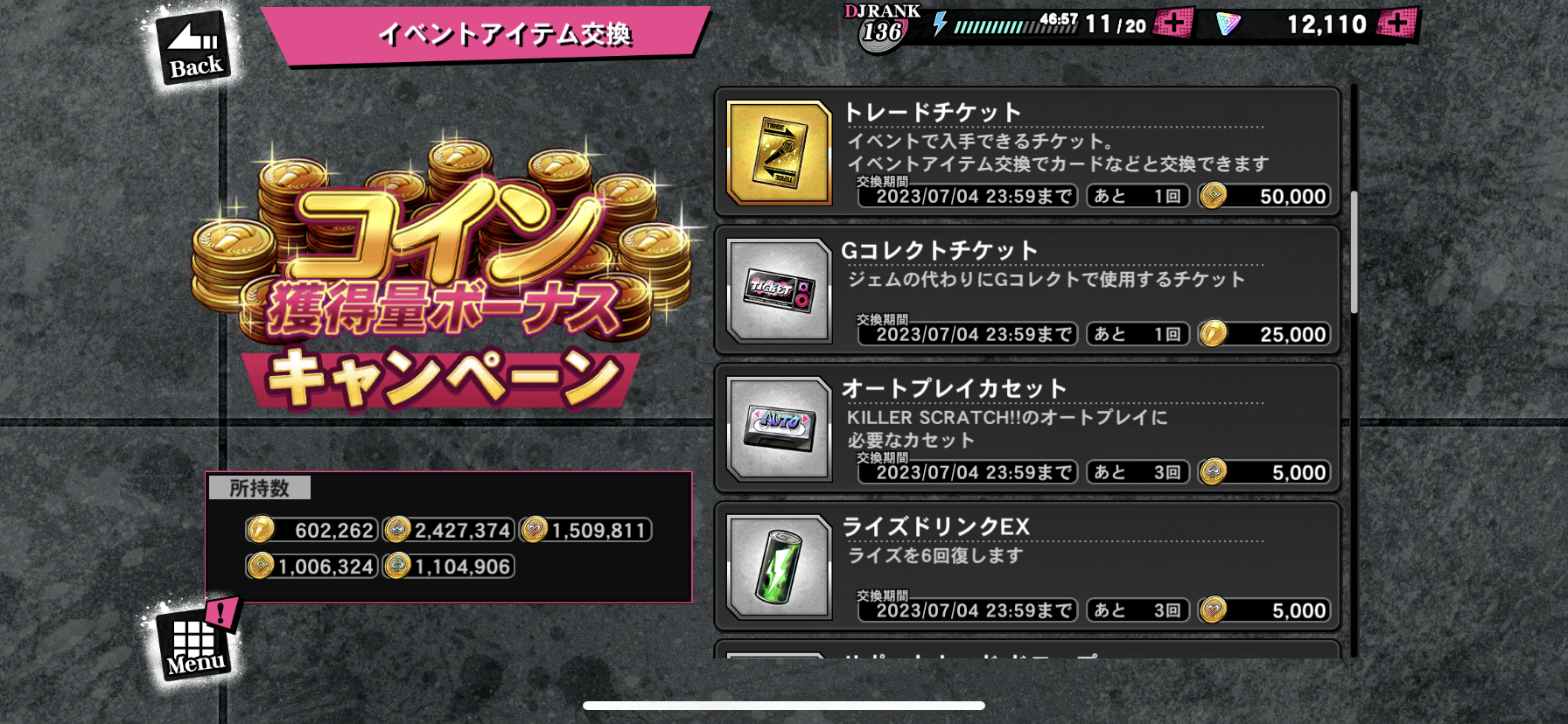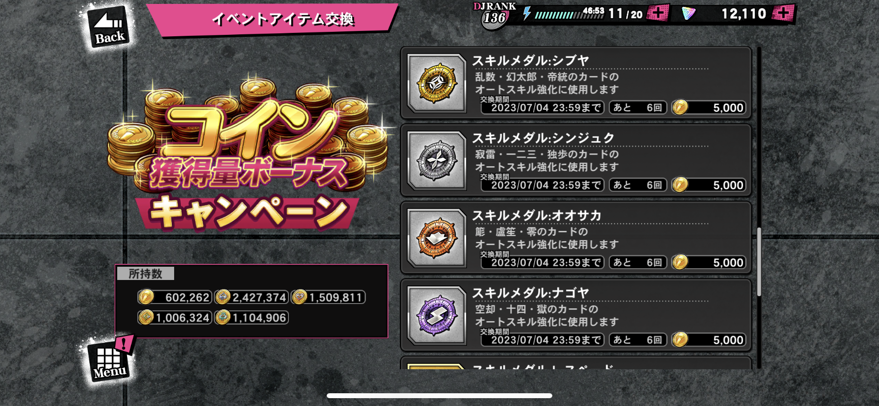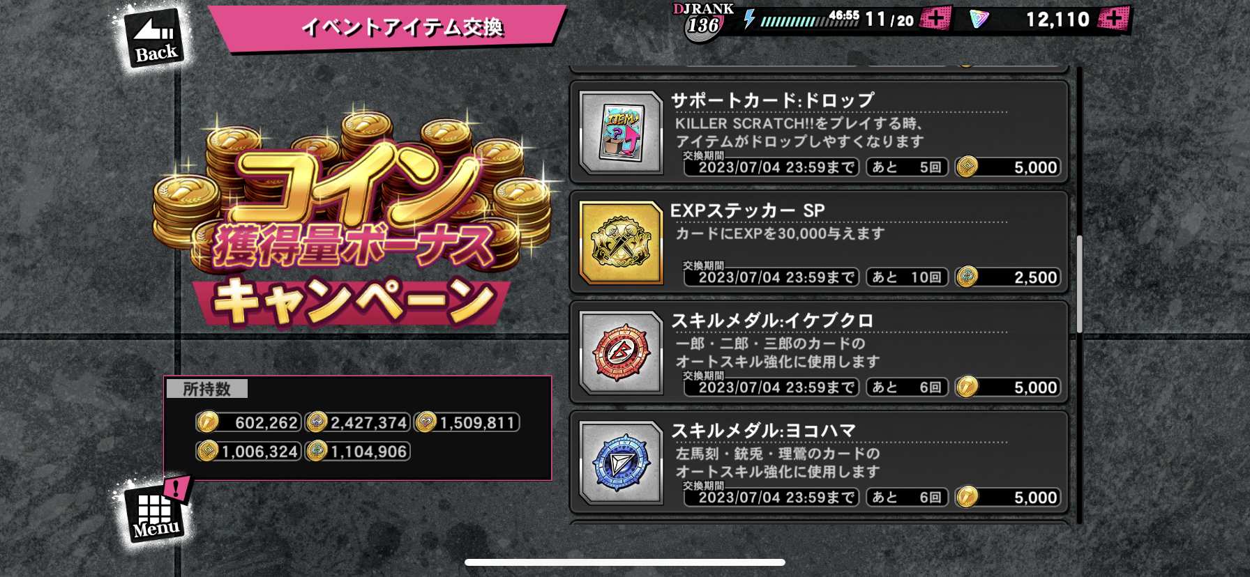 キャンペーン2・コイン獲得量ボーナスキャンペーン 限定コイン交換