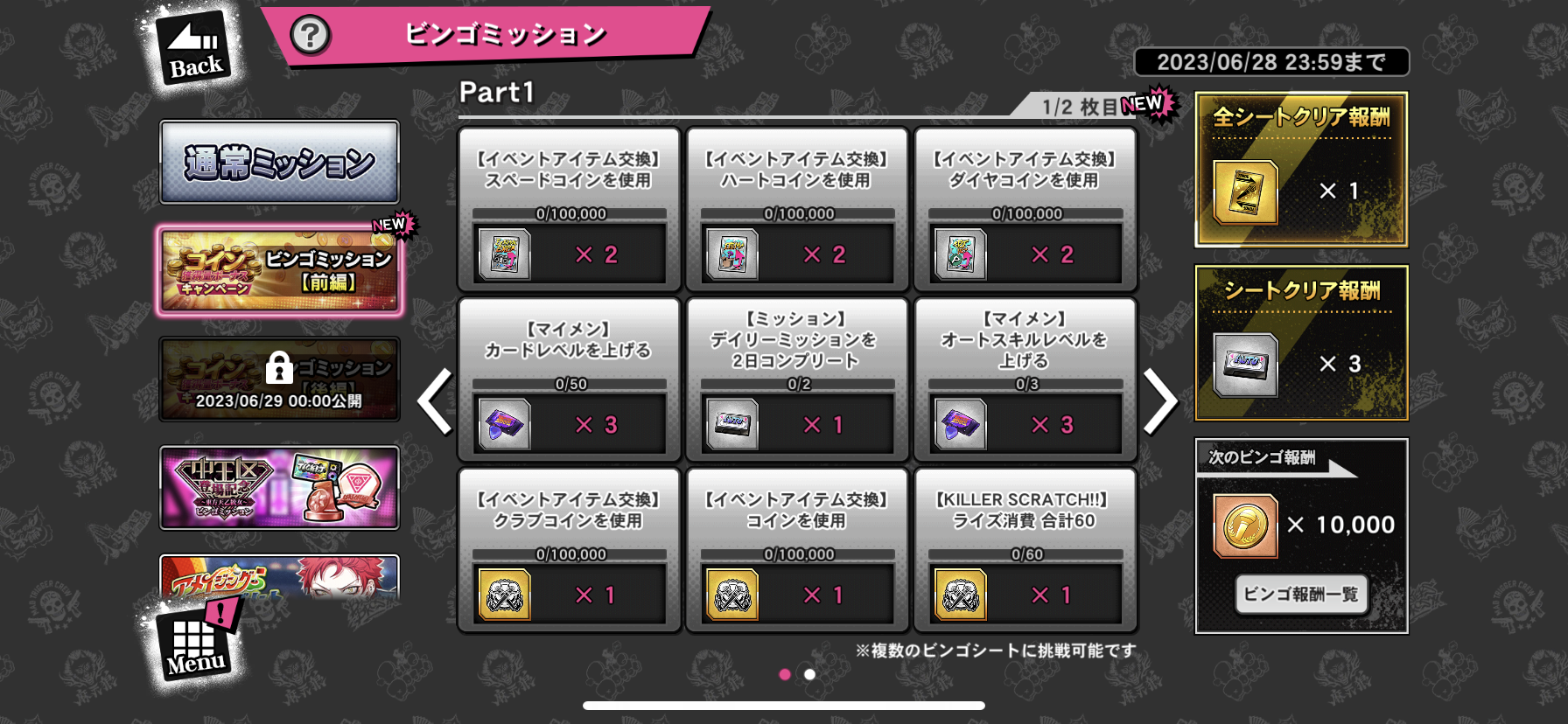 キャンペーン4・コイン獲得量ボーナスキャンペーン ビンゴミッション