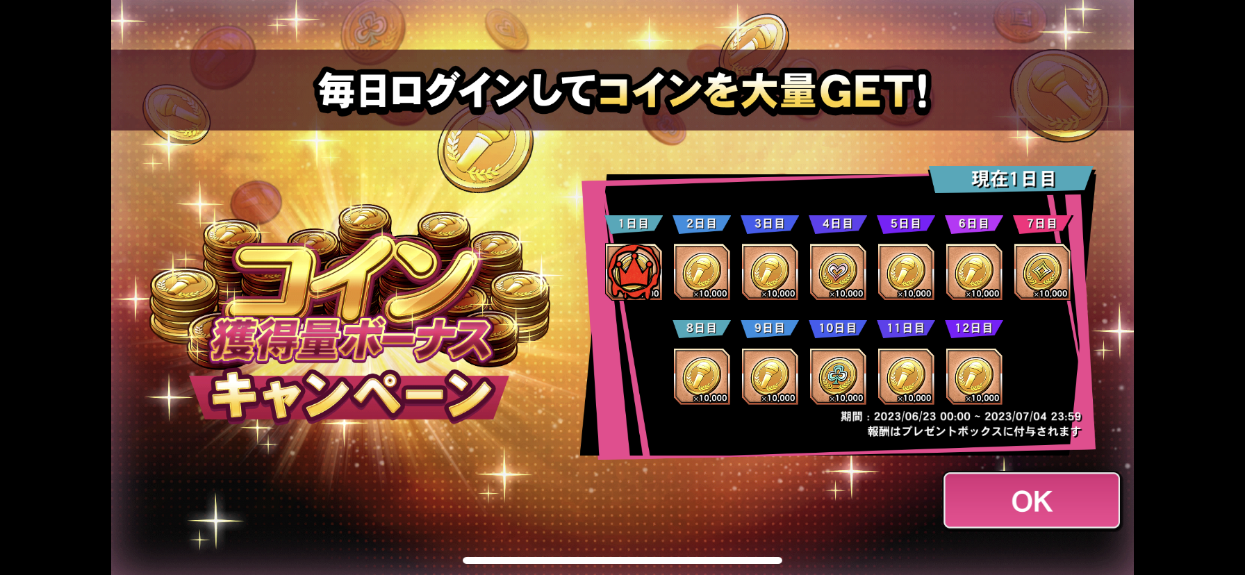 キャンペーン3・コイン獲得量ボーナスキャンペーン ログインボーナス