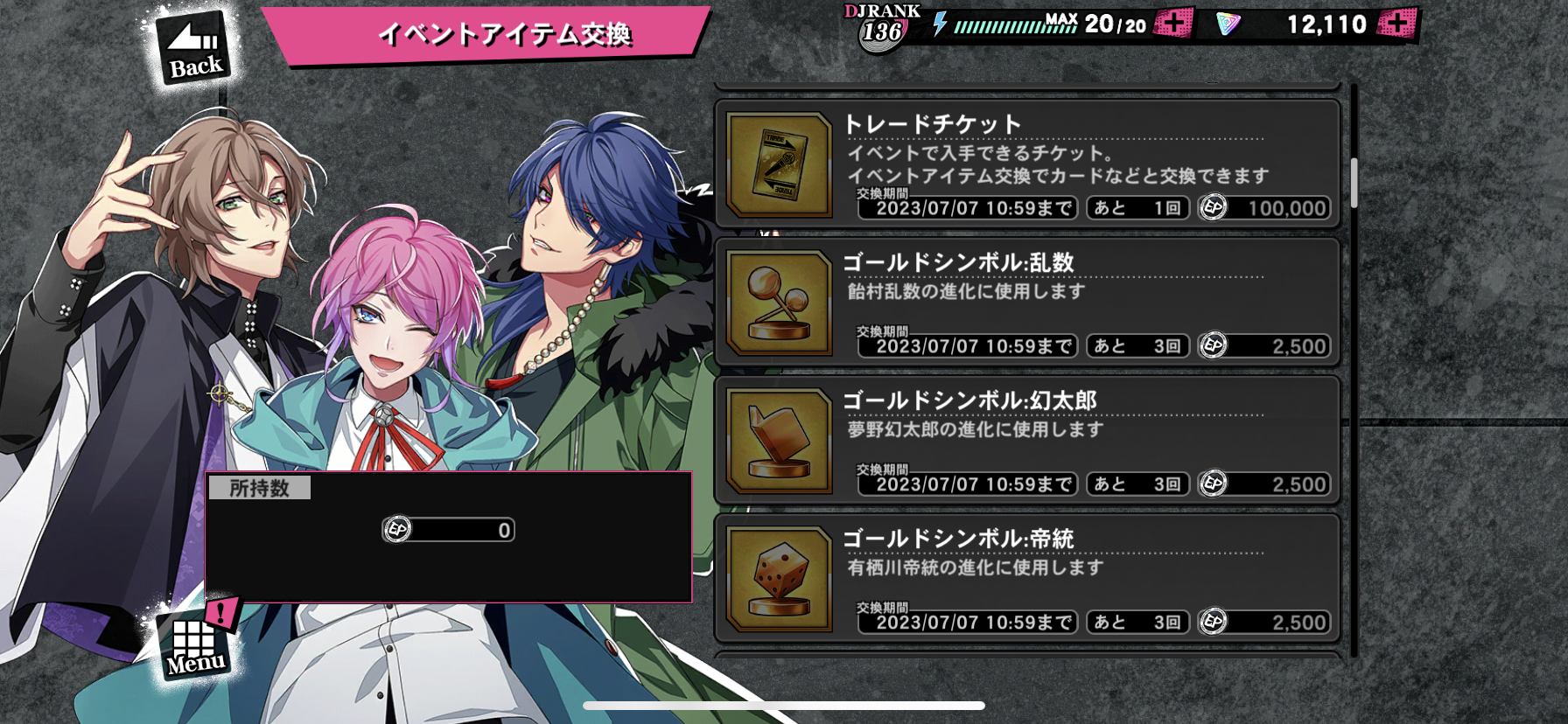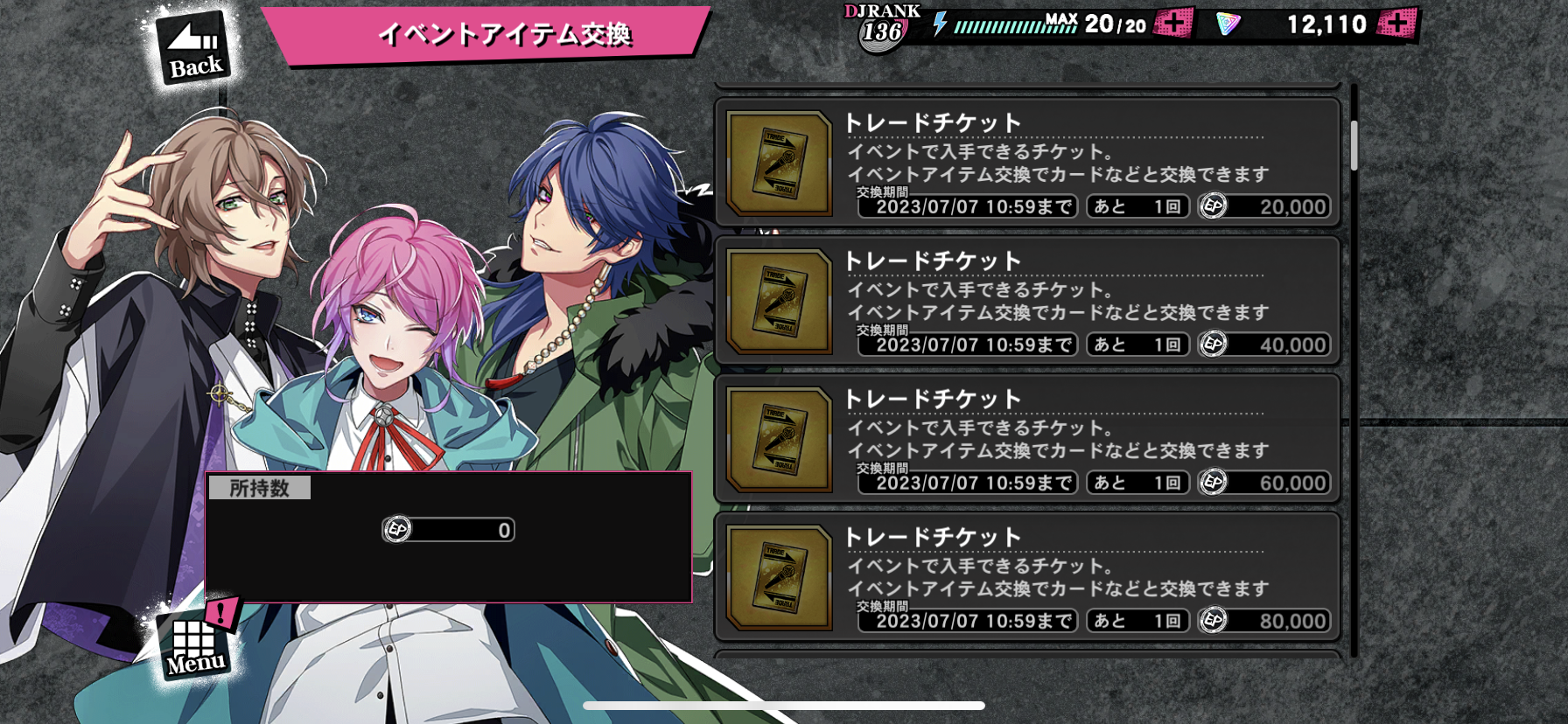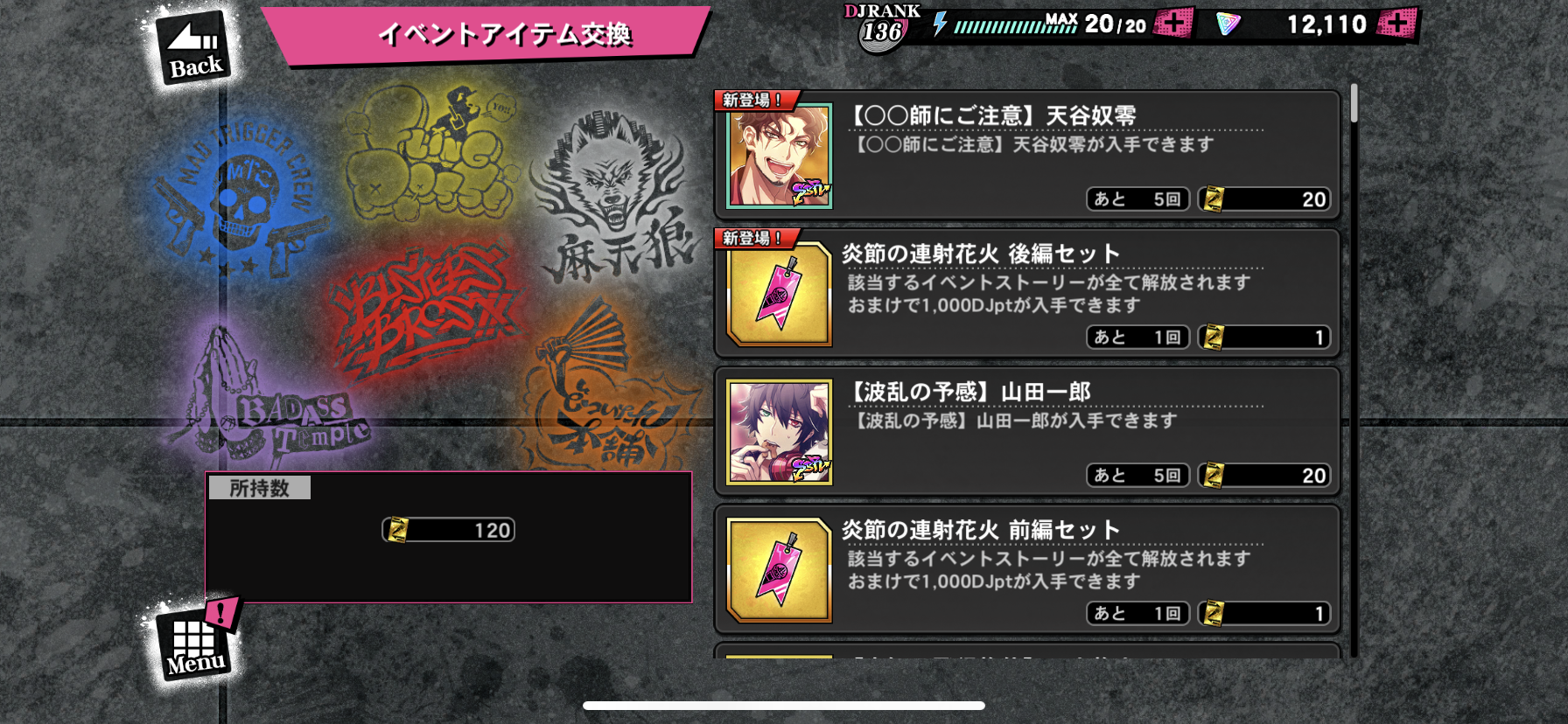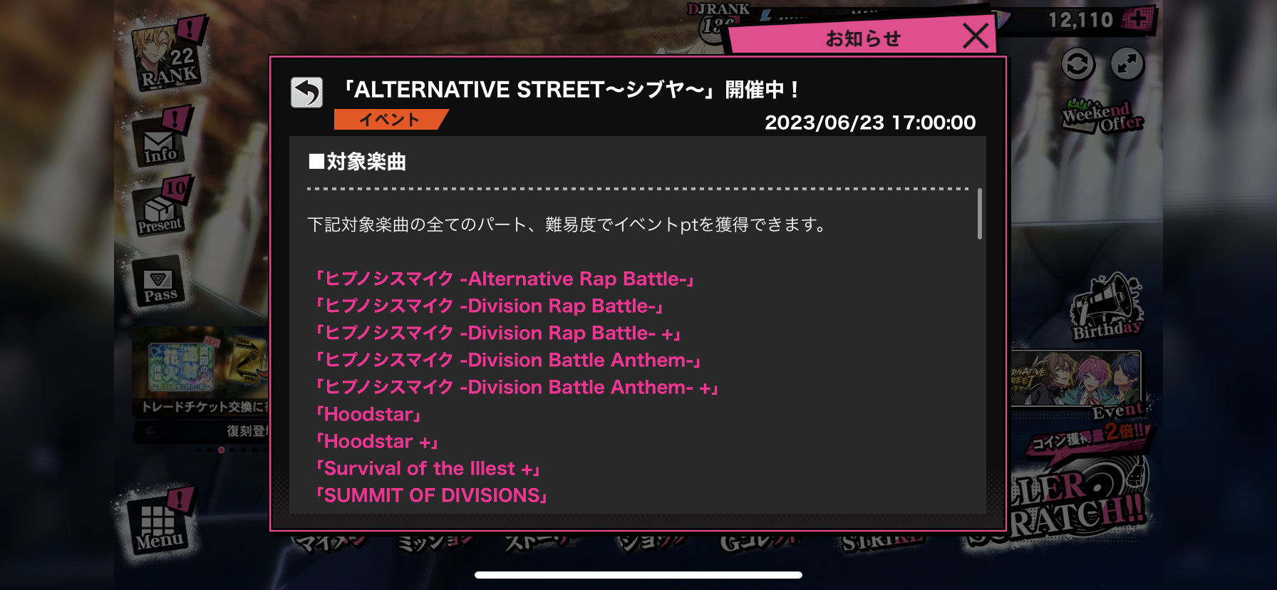 対象曲をプレイするとイベントptが貰えそのptで様々なアイテムと交換できるイベント