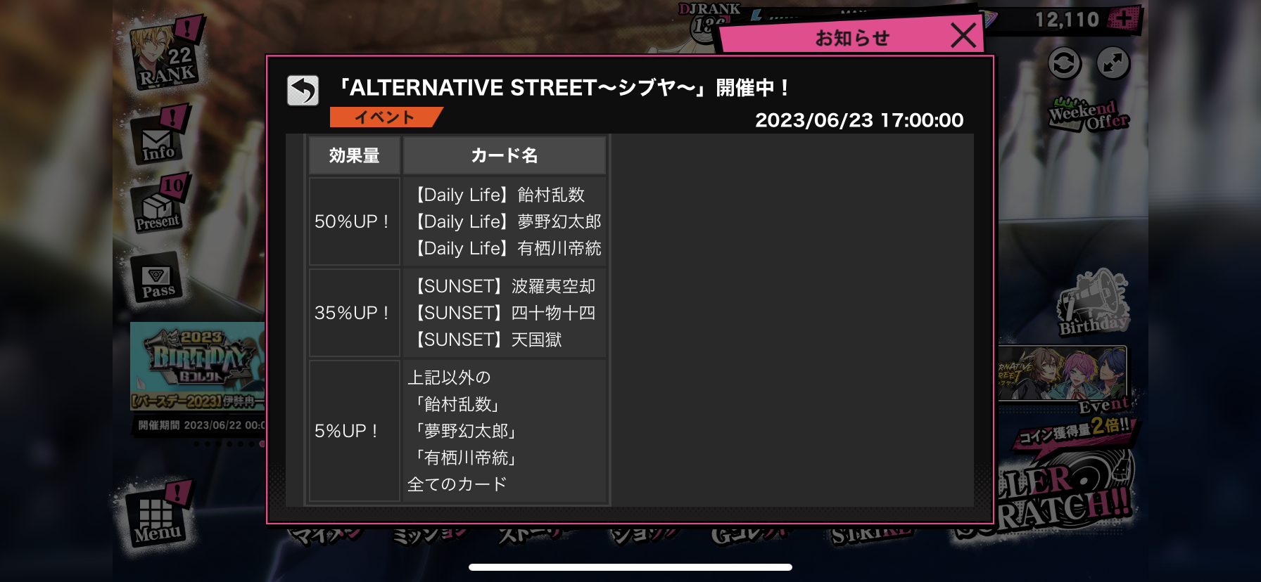 イベント「ALTERNATIVE STREET~シブヤ~」開始!