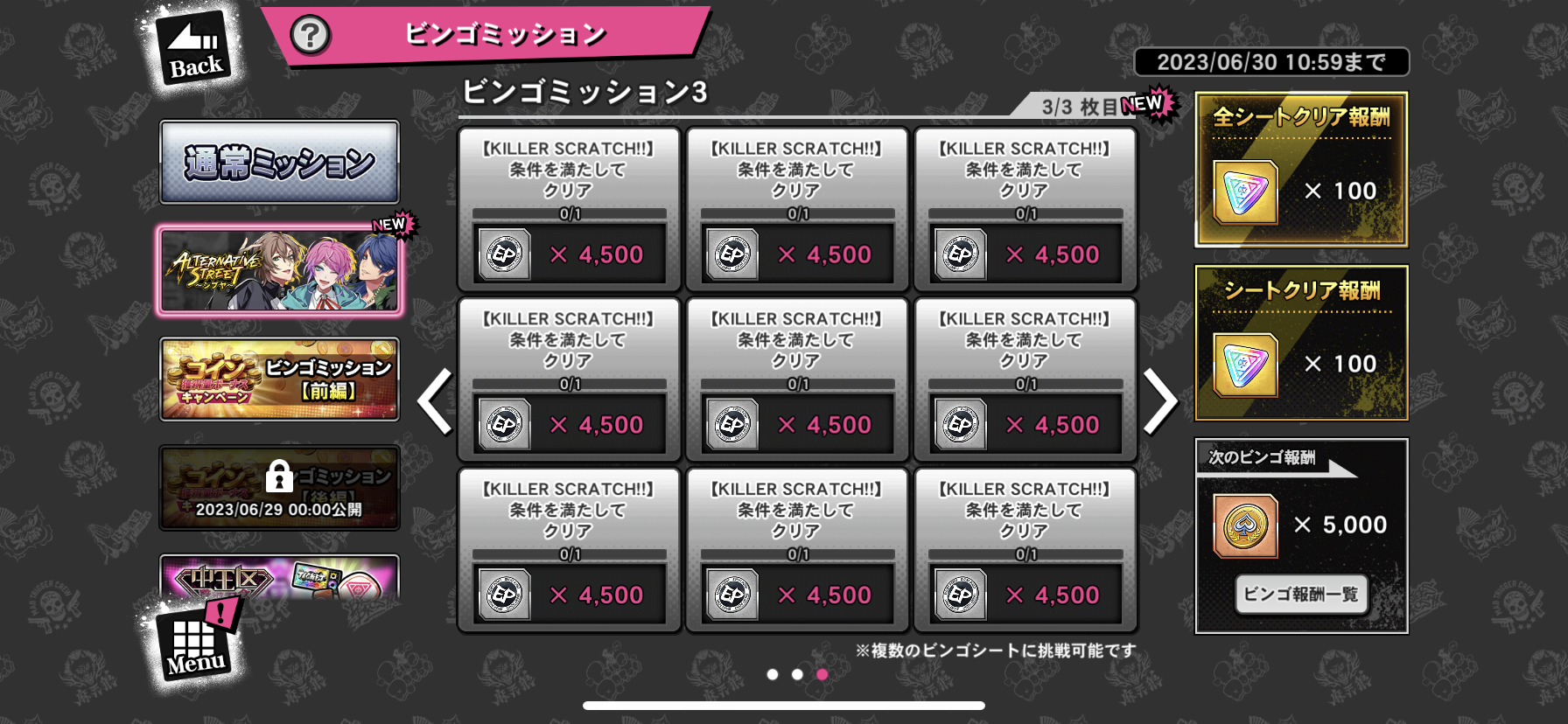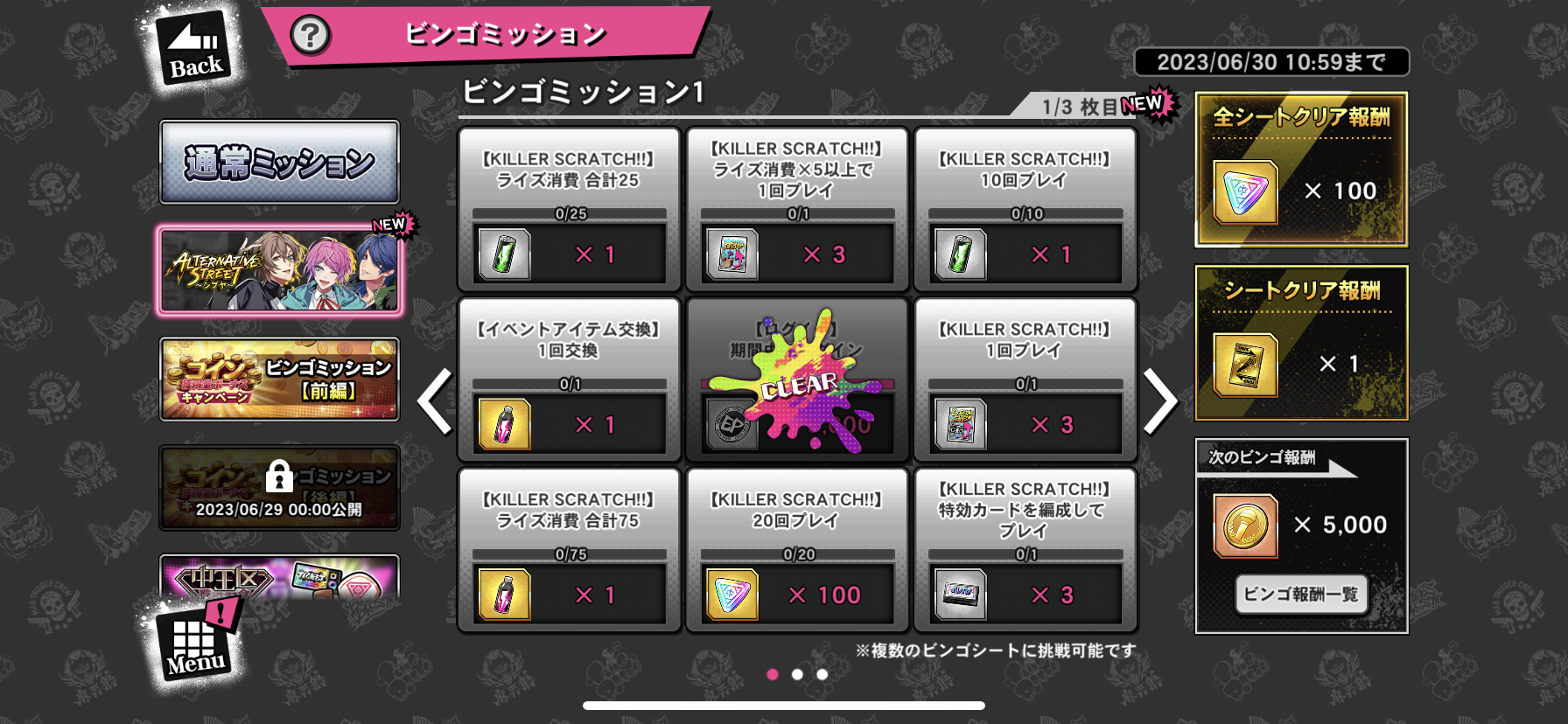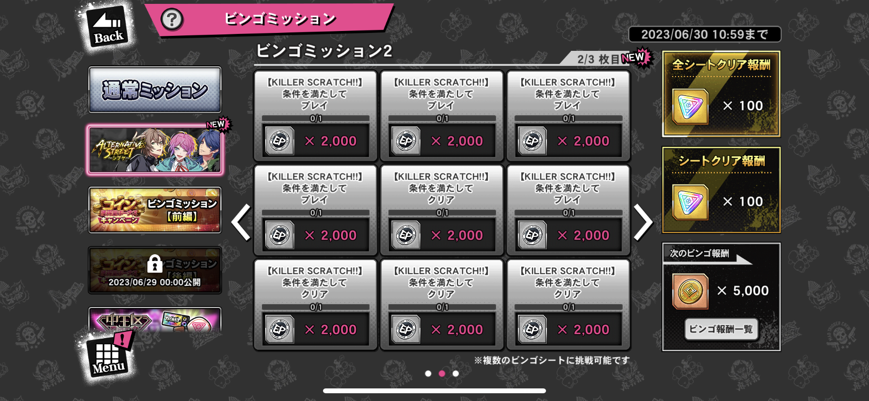 期間限定ビンゴミッション、複数のビンゴシートに挑戦可能
