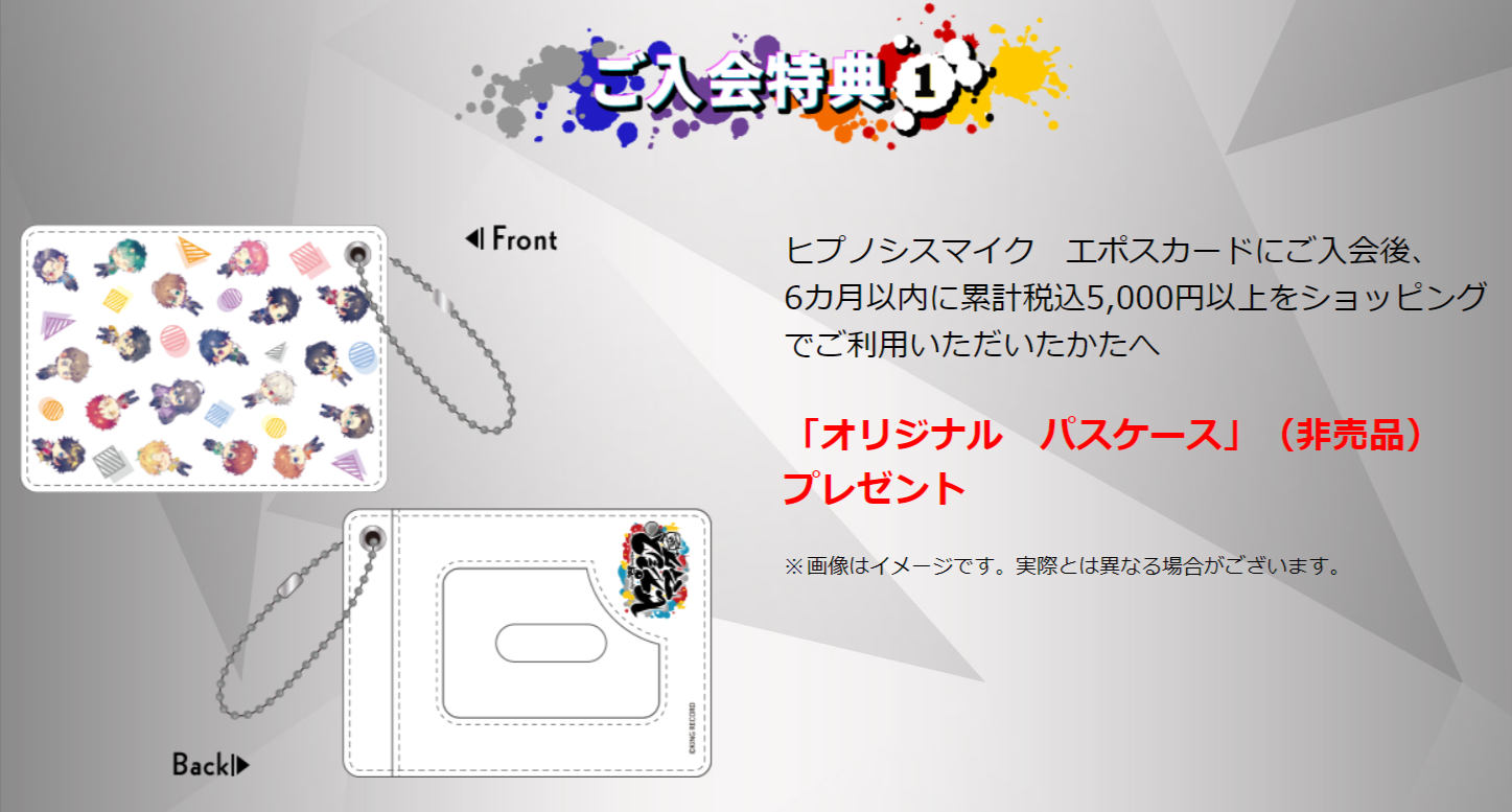 ヒプマイエポスカード入会後、6ヵ月以内に累計5000円以上ショッピングで利用すると「オリジナルパスケース」が貰える