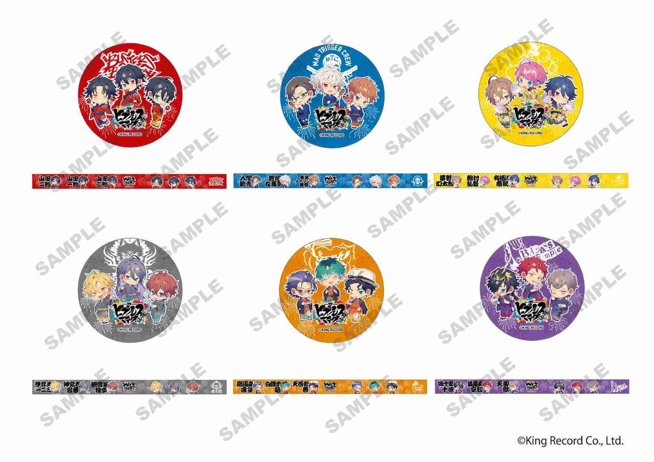 ぺたりんず- イケブクロ・ディビジョン&ヨコハマ・ディビジョン - (全6種)税込1,320円※1会計につき、おひとり様各種2点までぺたりんず- シブヤ・ディビジョン&シンジュク・ディビジョン - (全6種)税込1,320円※1会計につき、おひとり様各種2点までぺたりんず - オオサカ・ディビジョン&ナゴヤ・ディビジョン - (全6種)税込1,320円※1会計につき、おひとり様各種2点までスリムタペストリー(全18種)約182mm×555mm税込1,650円1会計につき、おひとり様各種2点までマスキングテープ(全6種)税込440円1会計につき、おひとり様各種2点まで巾着(全6種)税込1,320円1会計につき、おひとり様各種2点までもちころりん Extra Wardrobe04 - イケブクロ・ディビジョン&ヨコハマ・ディビジョン - (全6種)単品:税込935円1会計につき、おひとり様6点まで※トレーディングタイプですので種類は選べませんBOX:税込5,610円1会計につき、おひとり様1点までもちころりん Extra Wardrobe04 - シブヤ・ディビジョン&シンジュク・ディビジョン - (全6種)単品:税込935円1会計につき、おひとり様6点まで※トレーディングタイプですので種類は選べませんBOX:税込5,610円1会計につき、おひとり様1点までもちころりん Extra Wardrobe04 - オオサカ・ディビジョン&ナゴヤ・ディビジョン - (全6種)単品:税込935円1会計につき、おひとり様6点まで※トレーディングタイプですので種類は選べませんBOX:税込5,610円1会計につき、おひとり様1点までトレーディング缶バッジ(全18種)税込440円1会計につき、おひとり様18点までトレーディングアクリルスタンド(全18種)税込660円1会計につき、おひとり様18点までTHREE STICK CAKE vol.3 (全6種)税込1,458円1会計につき、おひとり様3点までその他、ヒプノシスマイクオフィシャルグッズなども販売いたします。セット/BOXは、製品の性質上、稀に1セット/1BOXで全種類揃わないこともございます